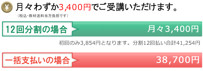 分割15回払いの場合 月々2,700円(初回のみ4,092円、分割合計 41,892円)となります。