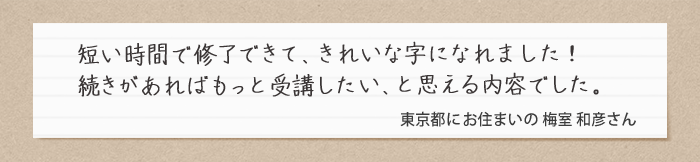 たった1週間であなたの文字は、目に見えて変わります。すぐに上達を実感できるので、書く事が自然と楽しくなって講座を進めるのがますます楽しくなっていきます。