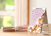 このコースでは提出課題としてスワロフスキー社のエレメント(ラインストーン)を使ってデコグッズを作ります。完成したときは自分の手で作った本格的なキラキラグッズに大感激!同時にいつの間にかプロの基本テクニックが身についているのですから、言うことなしです。課題はお送りいただき、プロのデコアーティストのアドバイスが受けられます。講座で作るものはカードケース、丸型ケースといった日常で使える物ばかりですから、完成後は自慢のデコグッズとして愛用してください!