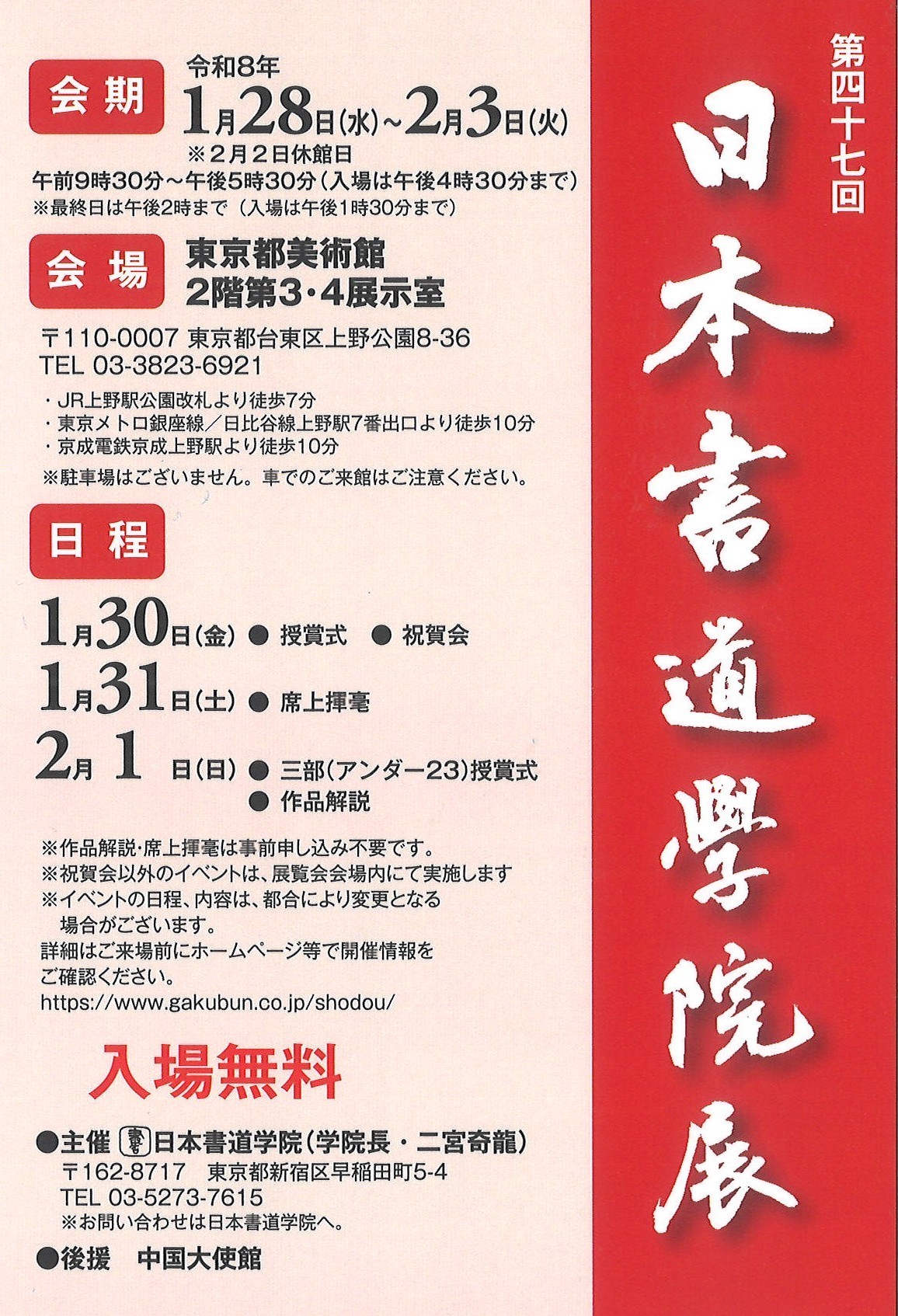 会期 令和8年1月28日(水)~2月3日(火)※2月2日(月)休館日