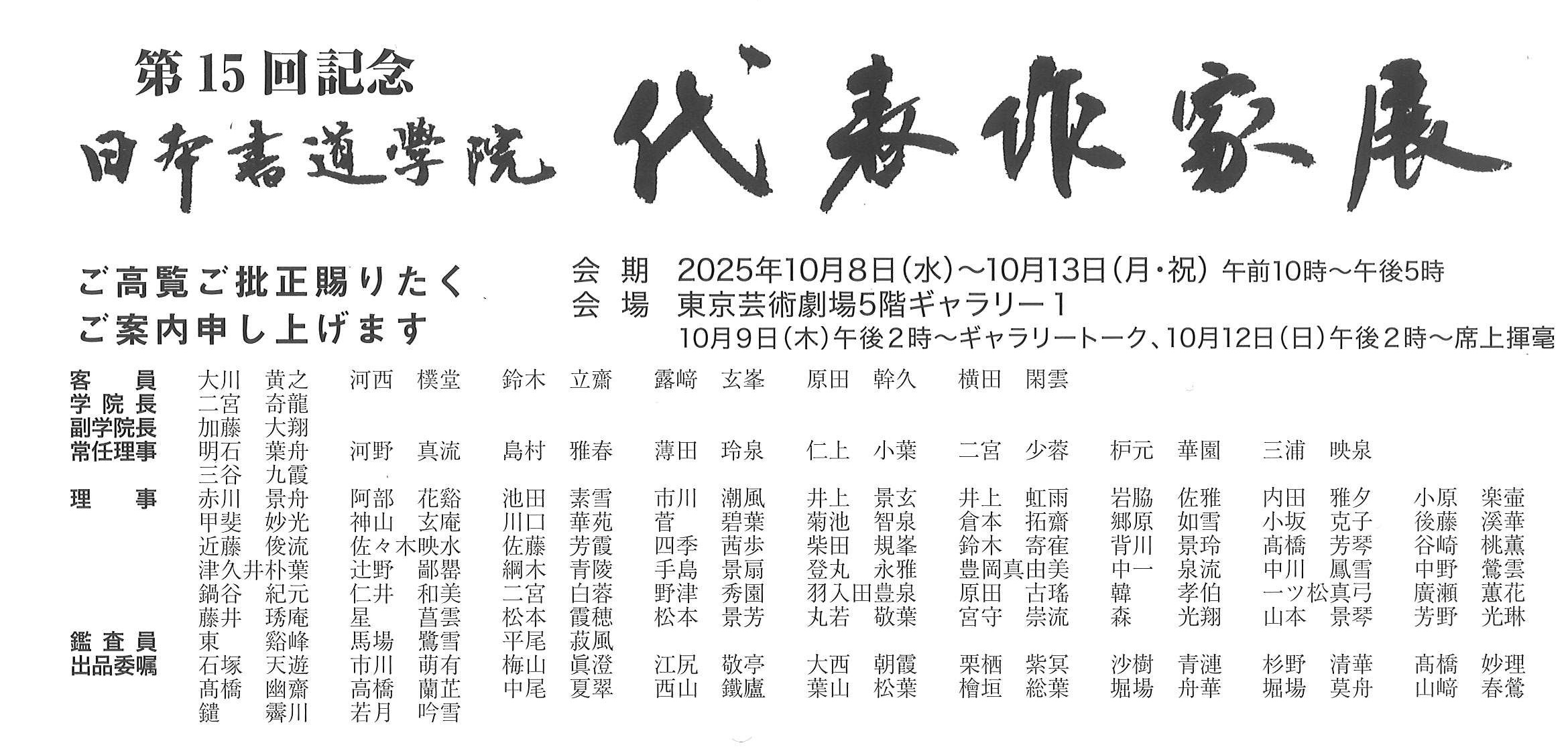 第15回記念日本書道学院代表作家展開催のお知らせ